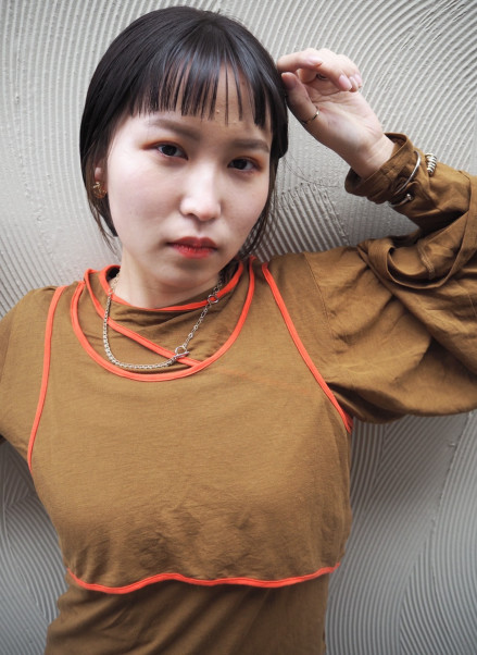ぷつっとした短めのシースルーバングが可愛いボブスタイル。オイルスタイリングで束感を出してあげるとお洒落で可愛いです。 もみあげ部分にさりげなくインナーカラーが入っています。