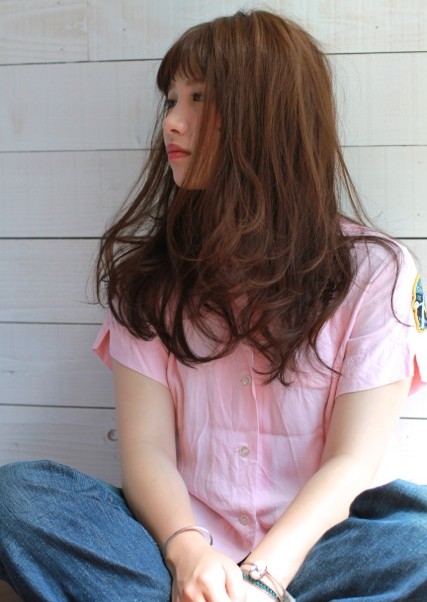 ショートバングに動きの出るロングスタイルで、カジュアルですがこなれて見えるSTYLEです。