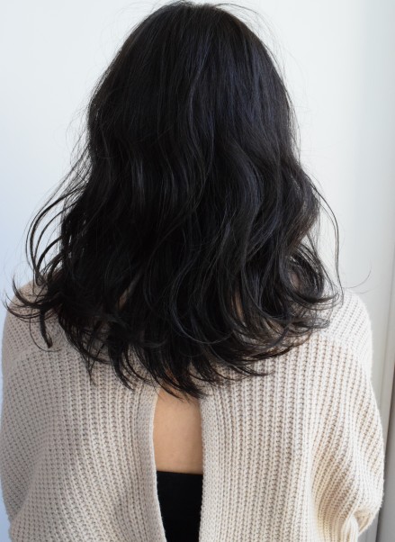 女の子らしさのあるミディアム~ロングレングスでふんわり かつ束間もあるセミウエットなウエーブスタイリングです。 落ち着いた赤味を抑えたアッシュカラーと 前髪のシースルー感で顔色が明るく見えるようにしました。
